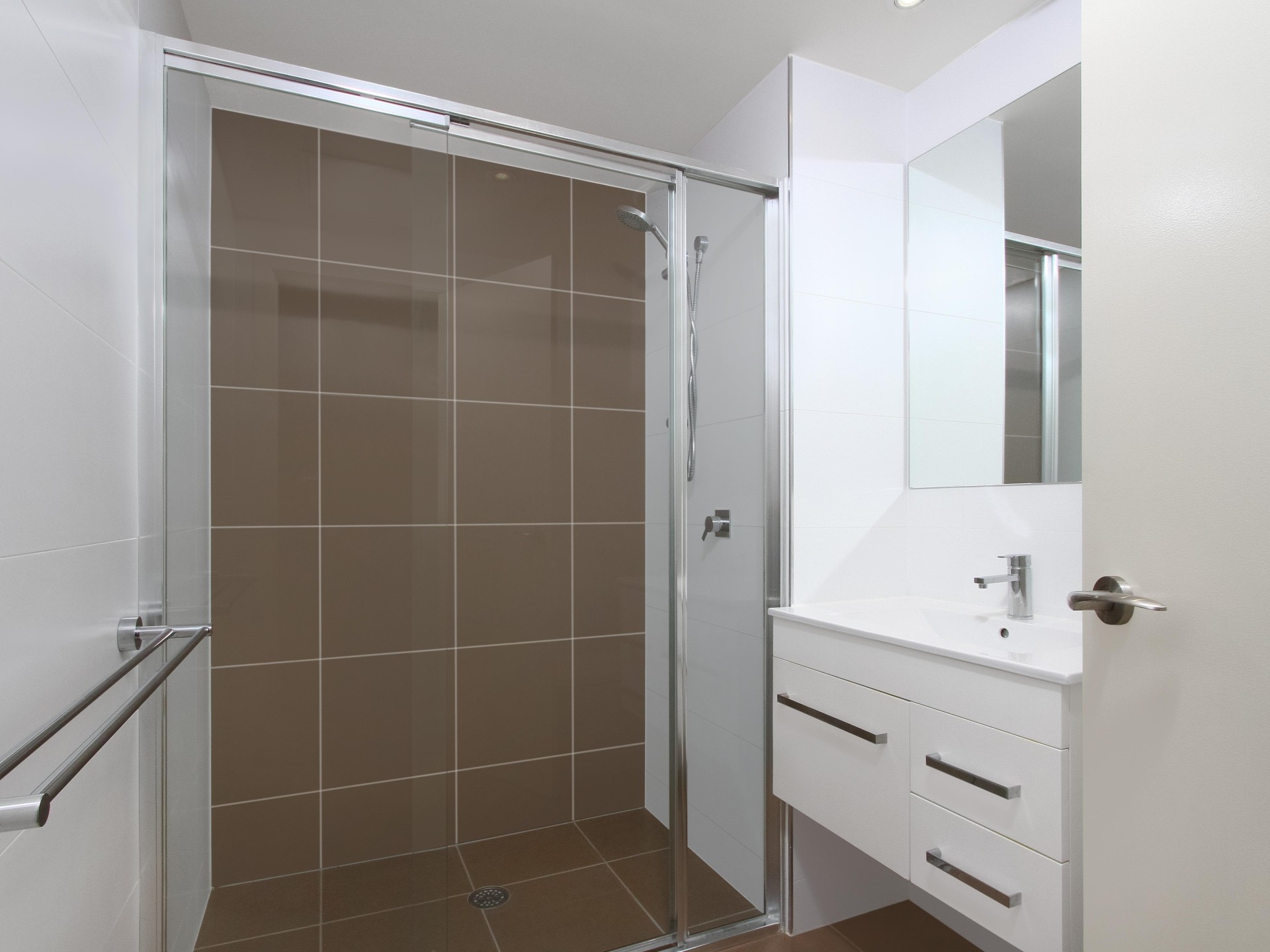 The bedroom offers a peaceful retreat with a generous built-in wardrobe, providing ample storage space for your belongings. Adjacent is the sleek bathroom, complete with a shower, toilet, and vanity.