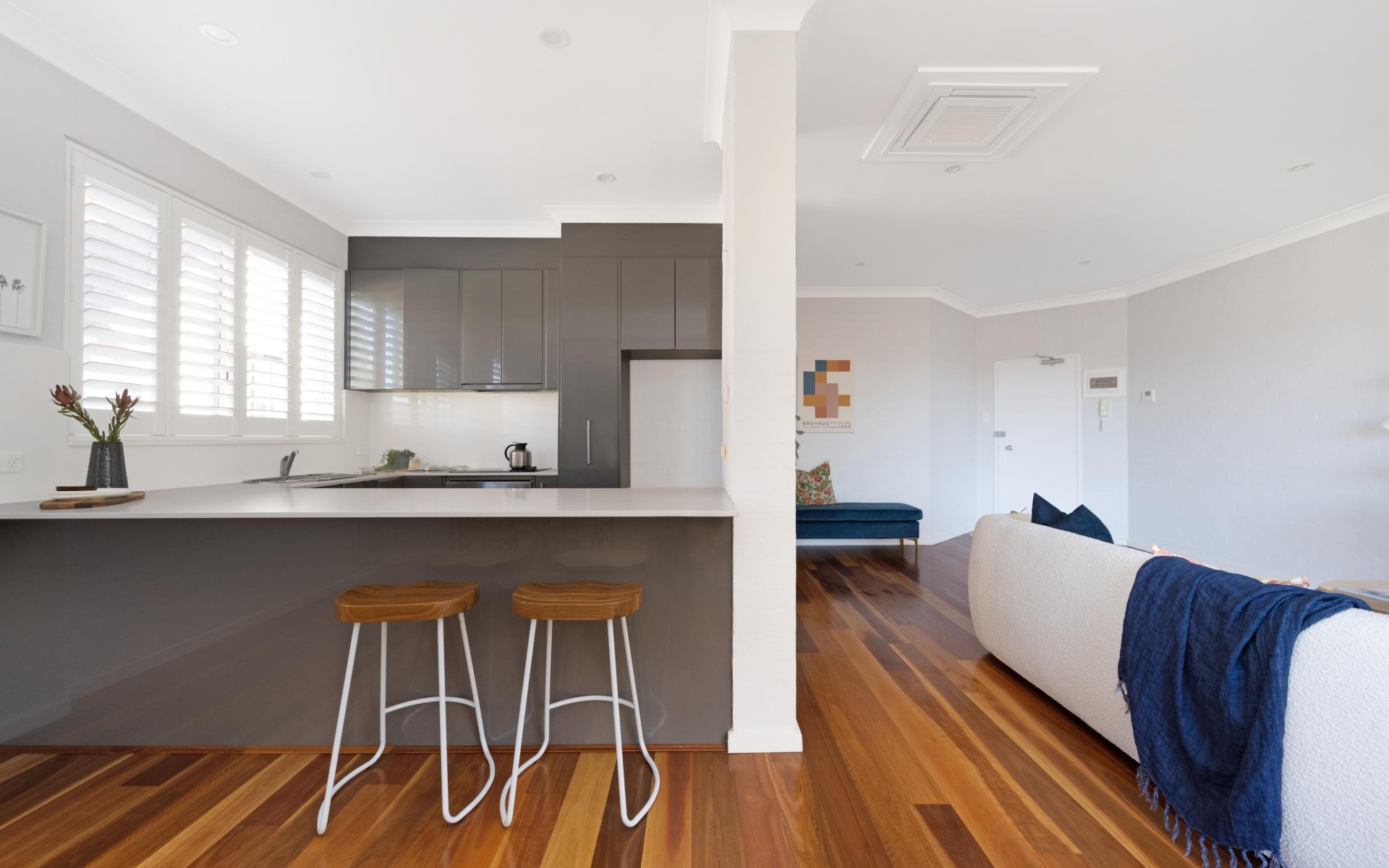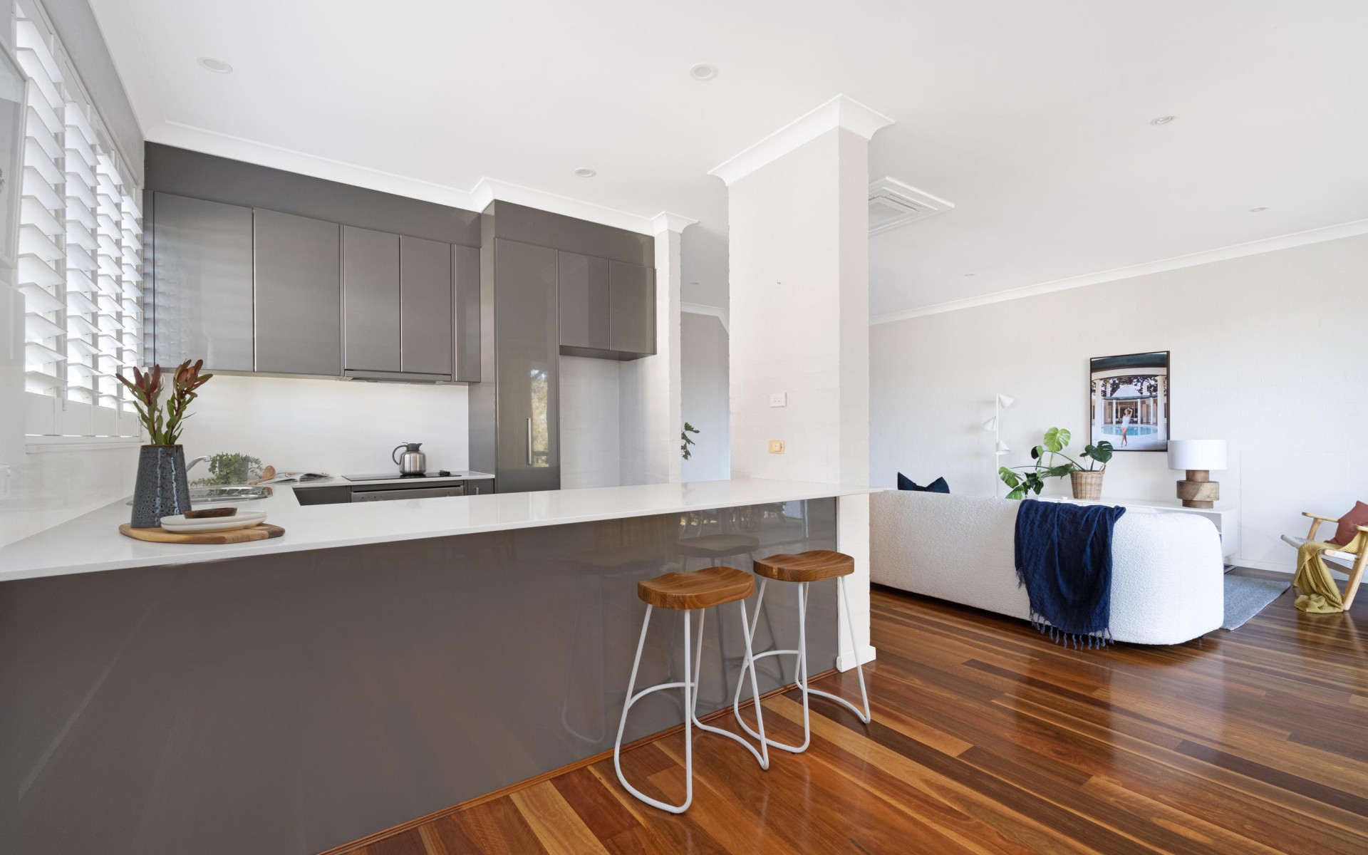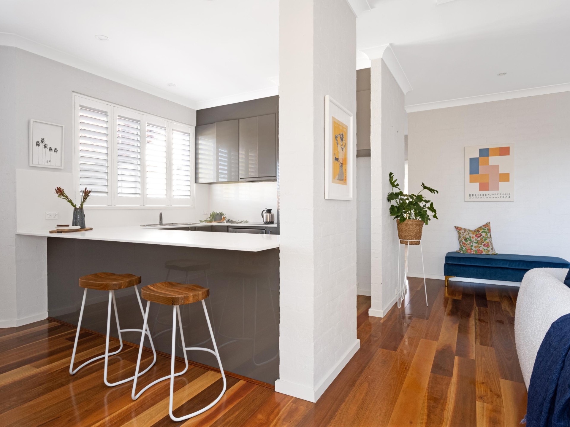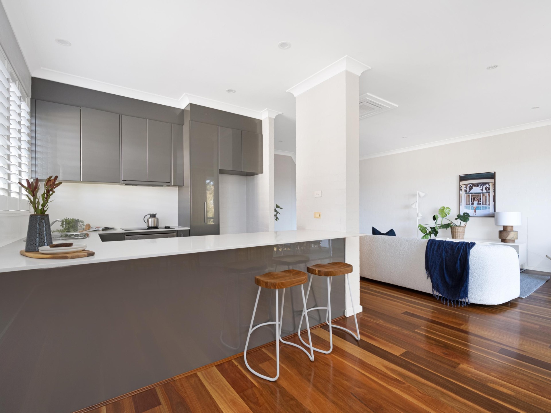 Step inside, and you'll be greeted by a spacious and light-filled living area, adorned with elegant wooden flooring that exudes warmth and sophistication. The fully renovated kitchen is a standout feature, featuring sleek stone benchtops, top-of-the-line appliances, and an abundance of storage space, This kitchen is sure to cater to all your culinary needs.
