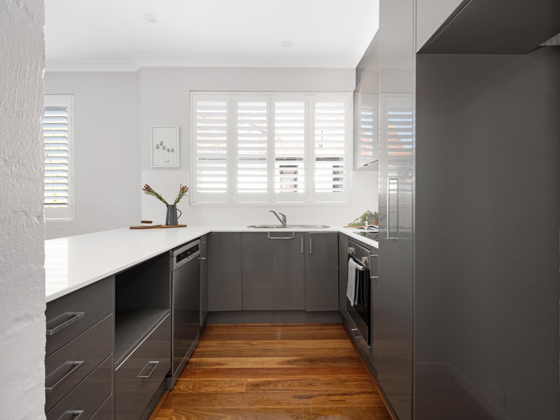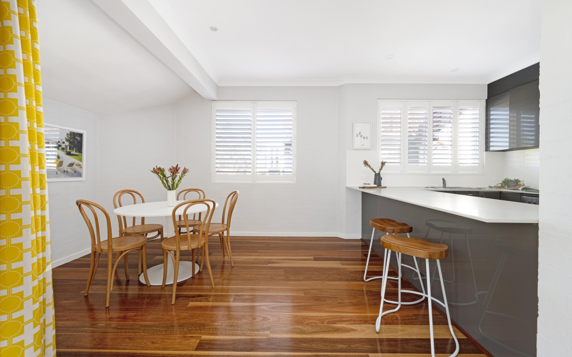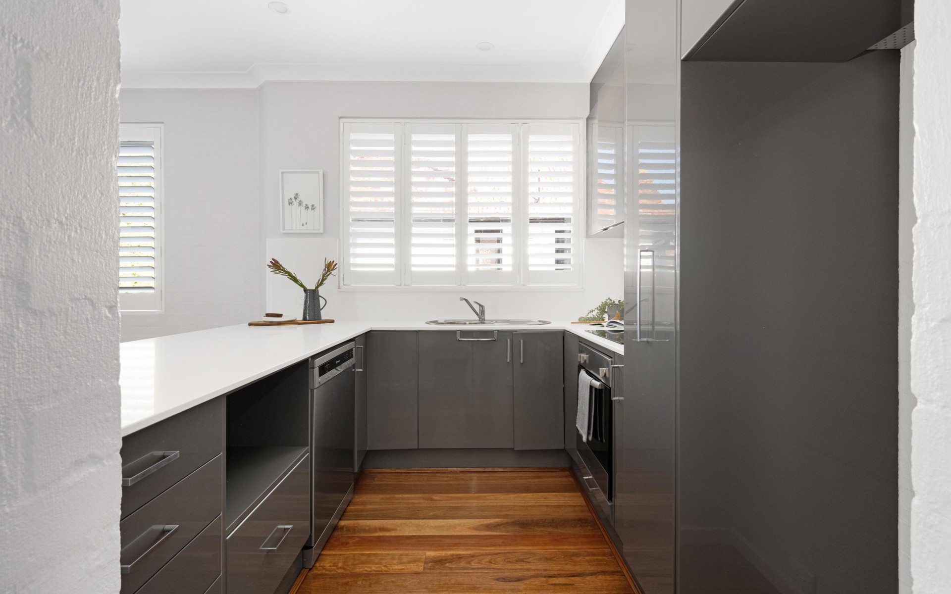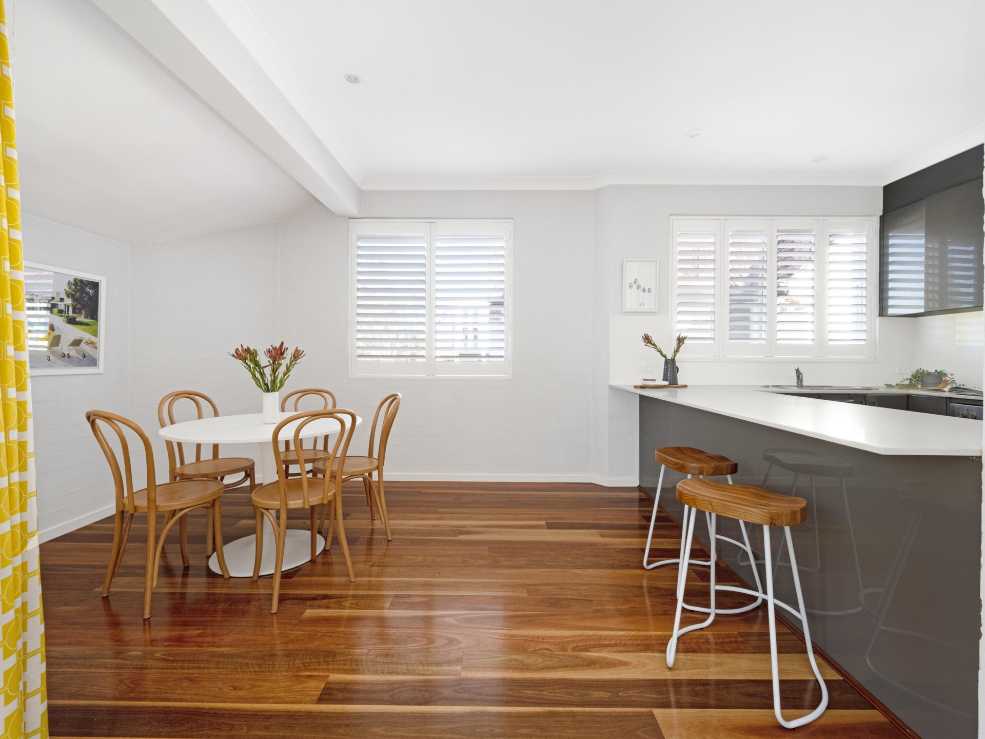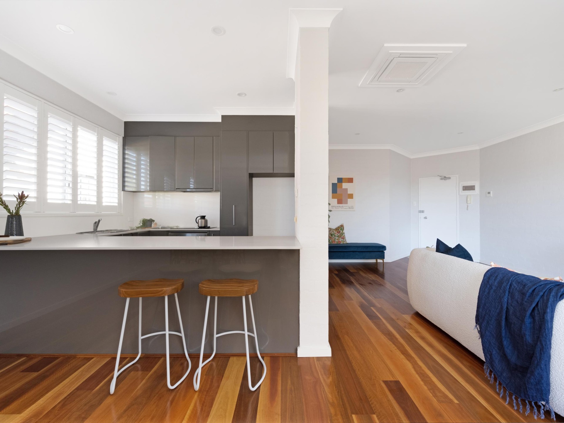 Step inside, and you'll be greeted by a spacious and light-filled living area, adorned with elegant wooden flooring that exudes warmth and sophistication. The fully renovated kitchen is a standout feature, featuring sleek stone benchtops, top-of-the-line appliances, and an abundance of storage space, This kitchen is sure to cater to all your culinary needs.
